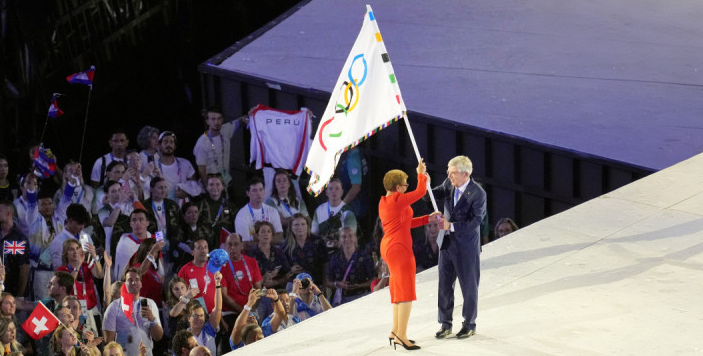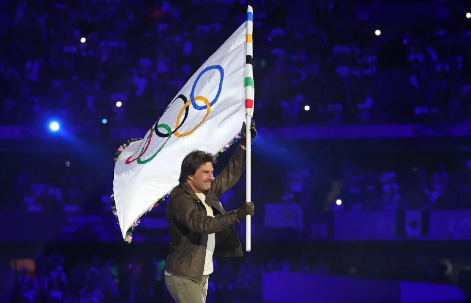 في نهاية الحَفل، ظهر الممثل الأمريكي الشهير توم كروز، حيث نزل من سقف الملعب عبر حبال. وتسلم العلم الأولمبي. ثم انطلق به عبر دراجة نارية في شوارع باريس، مستعرضًا مشاهد من فيلمه الشهير “مهمة مستحيلة”.